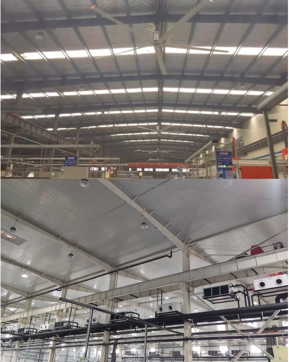 1、營造清涼舒適的車間環(huán)境。北區(qū)35000平方米的數(shù)智化車間,中央空調(diào)、新風(fēng)系統(tǒng)全力開放;南區(qū)車間配置多個排氣通風(fēng)降溫設(shè)備。