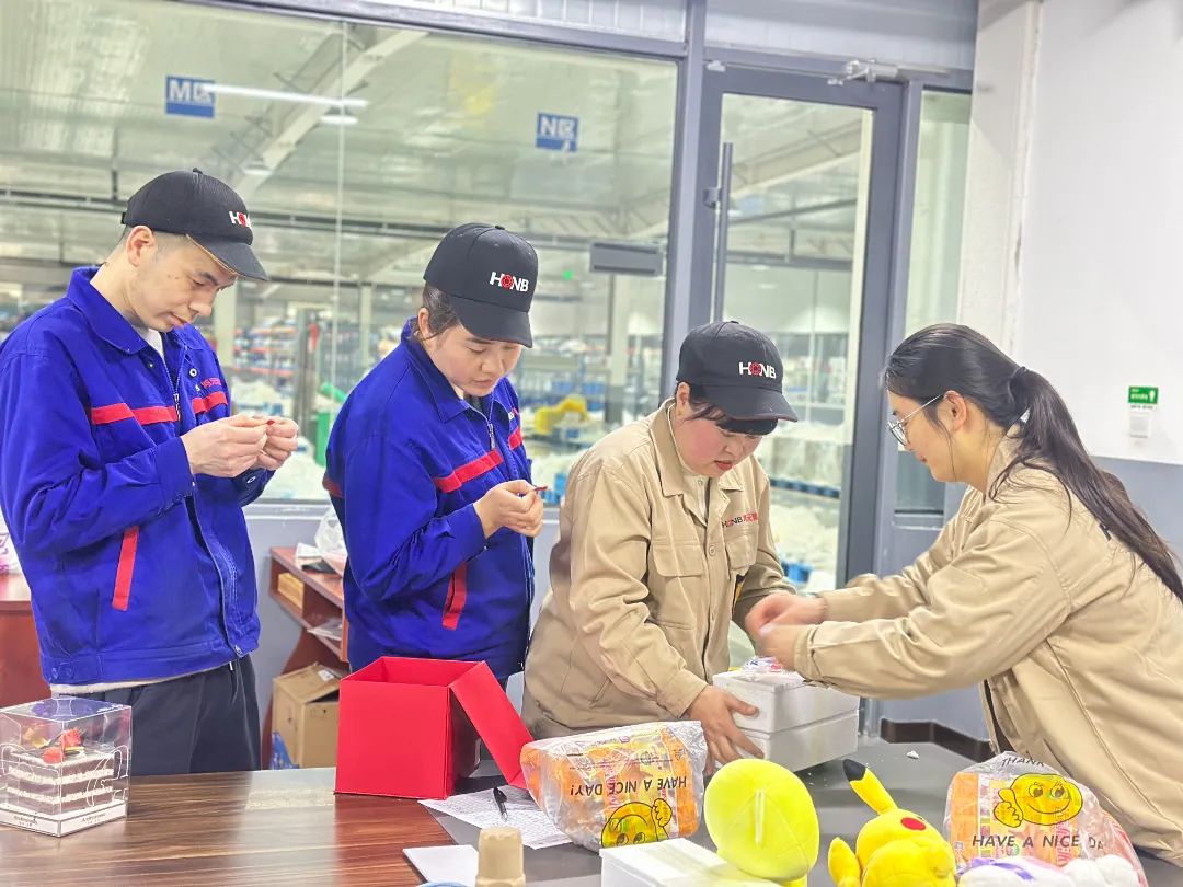 人資小伙伴們?cè)缭鐐浜玫案馀c禮物。松軟蛋糕上,象征希望的蠟燭輕輕搖曳,包裝精美的禮物滿含心意,每一件都精心挑選。它們承載著溫暖關(guān)懷,讓大家在鴻元感受家的溫馨。